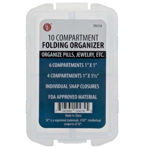 ( CURRENT ITEM ): 10-Compartment Folding Organizer (6 Compartments 1"x1" / 4 Compartments 1"x1/2"), FDA Approved Material
